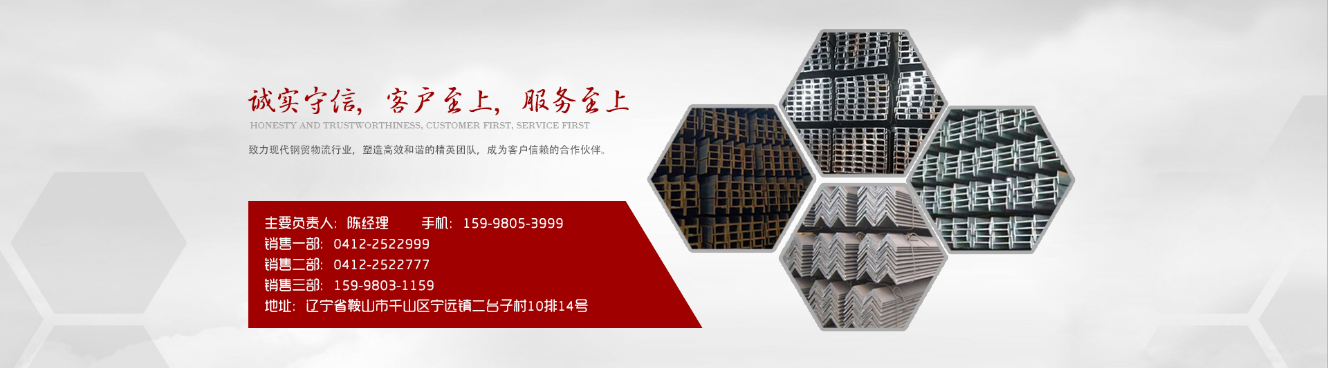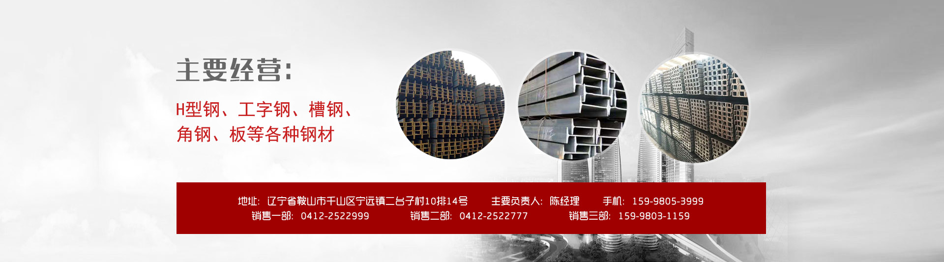 鞍山市鑫华通贸易有限公司位于鞍山二台子钢材市场10排14号。公司主要经营:H型钢、工字钢、槽钢、角钢、板等各种钢材。多年来在新老客户以及各钢厂的大力支持下,使得公司的业务得到飞跃发展、并与宝得、鞍钢、津西、天柱、莱钢、马钢、本钢等钢厂形成良好的战略合作伙伴。我们致力于成为中国北方专业的钢材统购分销供应商。我公司一直遵循“不忘初心 方得始终”的企业精神和“诚实守信,客户至上,服务至上”的企业宗旨,致力现代钢贸物流行业,塑造一支和谐的精英团队,成为客户信赖的合作伙伴。我公司努力提高经营理念和改变营销方式,以实力服务市场、以诚信保证客户满意、以优质产品树立信誉,从而使公司不断成长壮大,鞍山鑫华通诚邀新老客户加强合作,共同发展,共同进步,共创一个互惠互利的合作平台!